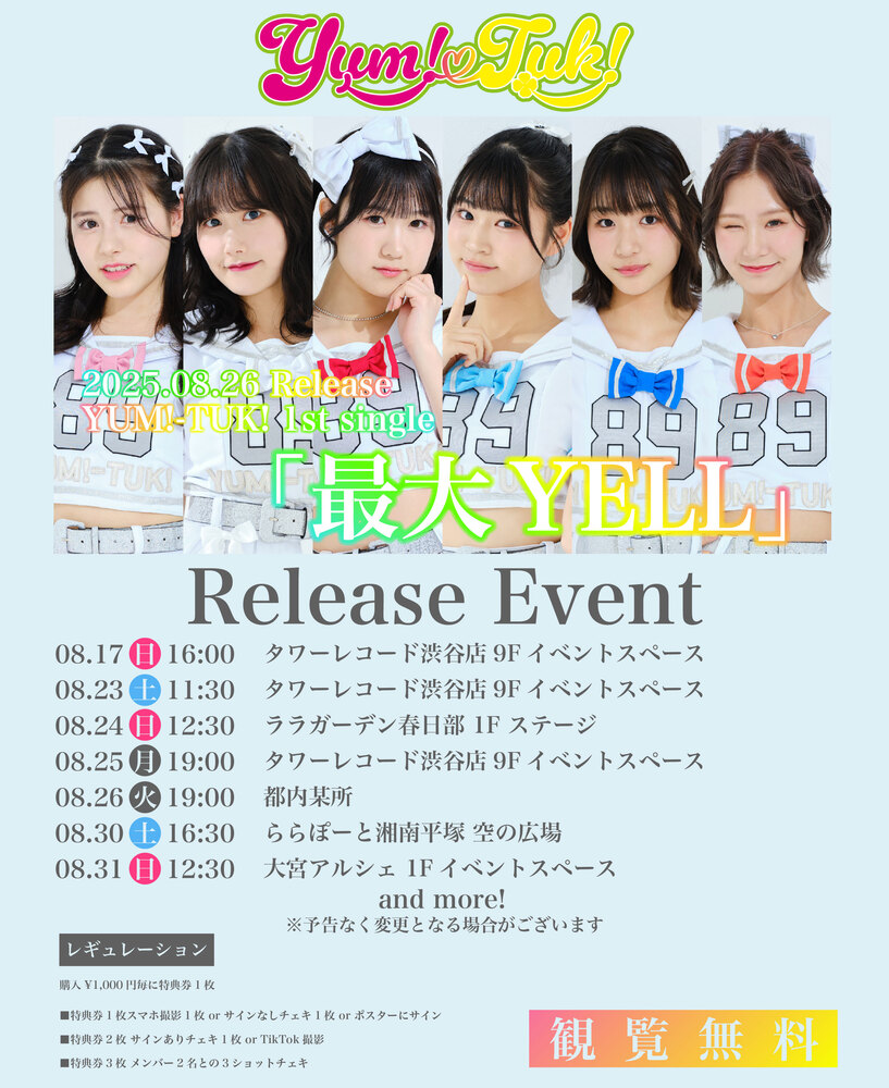【リリースイベント vol.22】YUM!-TUK! 1stシングル『最大YELL』ミニライブ&特典会