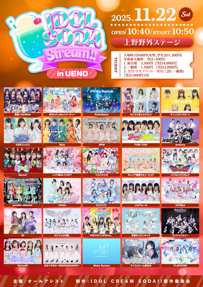 前方席¥3,500 / 一般席 ¥1,500 / 当日券 各+¥500 / 各+1D